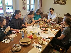 Auf Tuchfühlung mit dem Geschäftsführer kommt jeder Azubi, wenn es zum Vesper auf einen Bauernhof bei Steinach geht. So lernt man sich besser kennen und die heimischen Genüsse schmecken obendrein noch ausgezeichnet.
