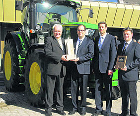 Nicht zu kurz kam aber auch der Dank an die Beschäftigten, die vom Betriebsratsvorsitzenden Matthias Nagel und von Oliver Sickinger, und Ralf Zimmermann bei der Feierstunde repräsentiert wurden. Klar, dass auch die Bereichsleiter anwesend waren, unter anderem Christian Felig und Mike Frölich, der als John Deere-Key Accounter nicht nur wegen seiner exzellenten Sprachkenntnisse „maßgeblich an der Auszeichnung beteiligt ist“ wir Förtsch formulierte.